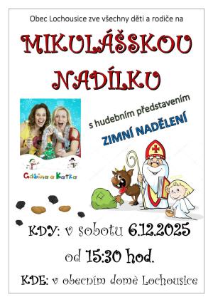 Mikulášská nadílka se koná v pátek 5. prosince 2025, sraz u kapličky začíná v 17:00. Mikuláš, anděl a čerti si letos připravili zábavný program na návsi, který je určen nejen pro místní děti, ale také pro vnoučata a pravnoučata starousedlíků. Prosíme všechny zájemce, aby nahlásili účast dětí do 27.