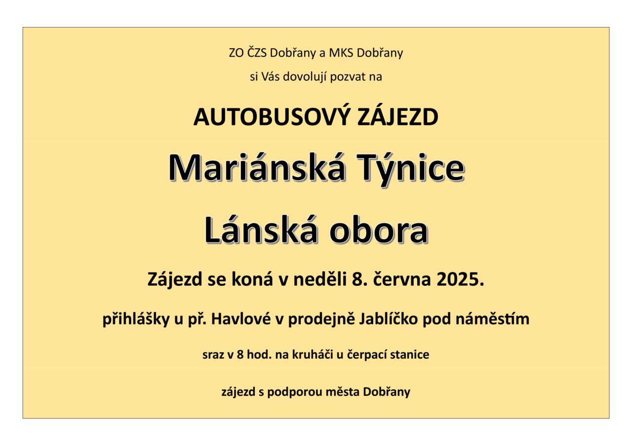 zájezd s podporou města Dobřany.