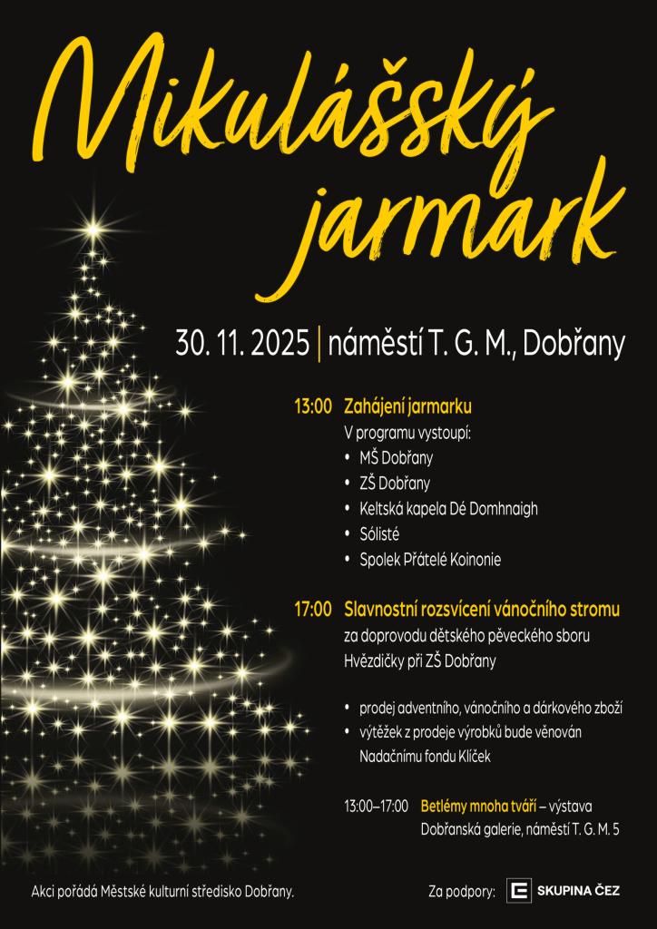 Mikulášský jarmark a rozsvícení vánočního stromu na náměstí v Dobřanech.